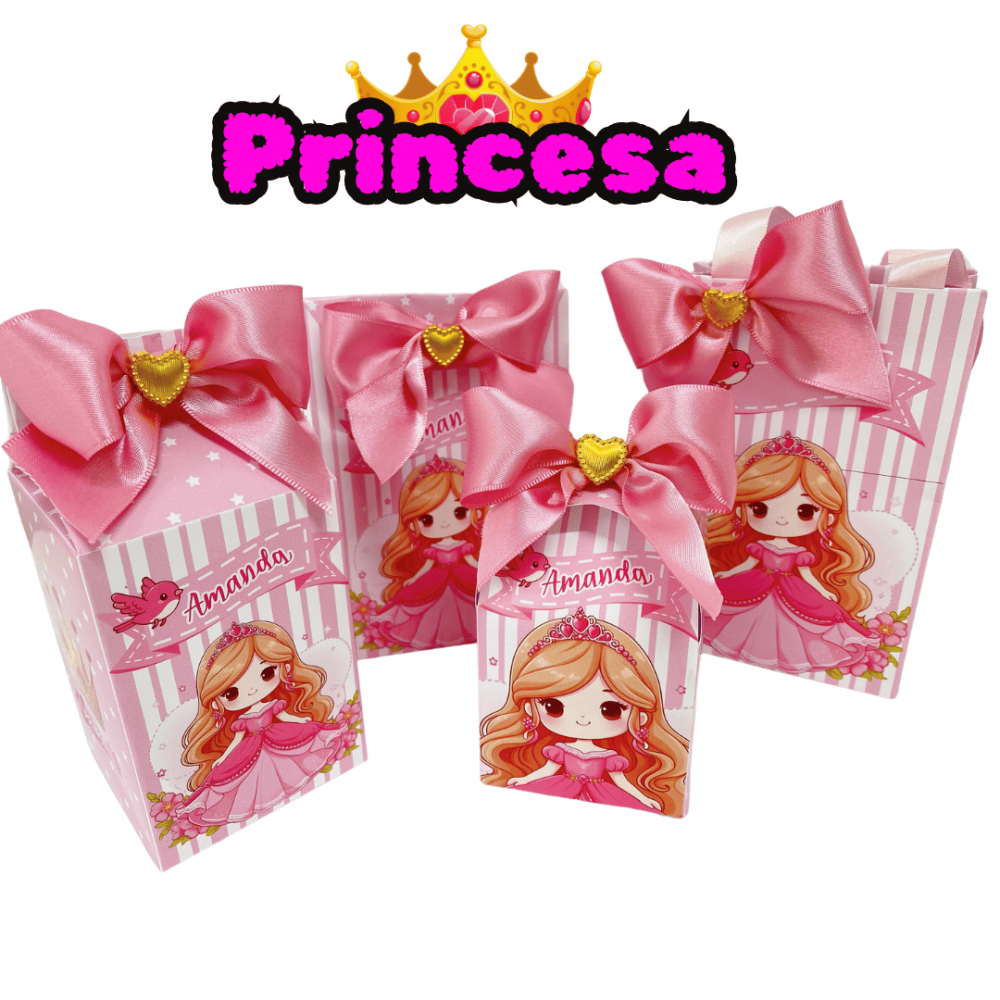 Pacote de lembrancinhas para mesversario no tem Princesa, ideal para uma festa afetiva e familiar.