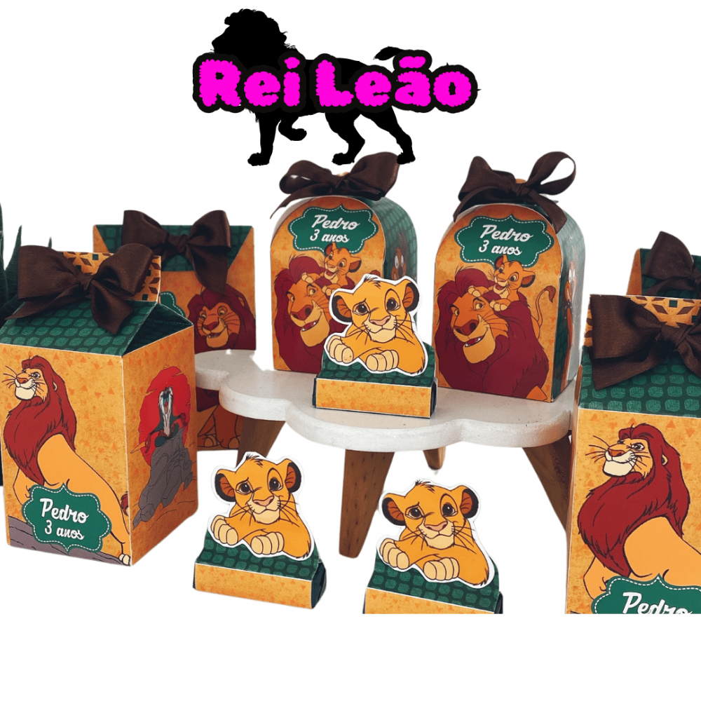 Pacote de lembrancinhas para mesversario no tema Rei Leão, ideal para uma festa afetiva e familiar.